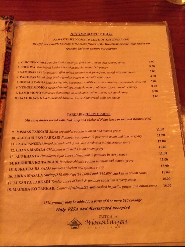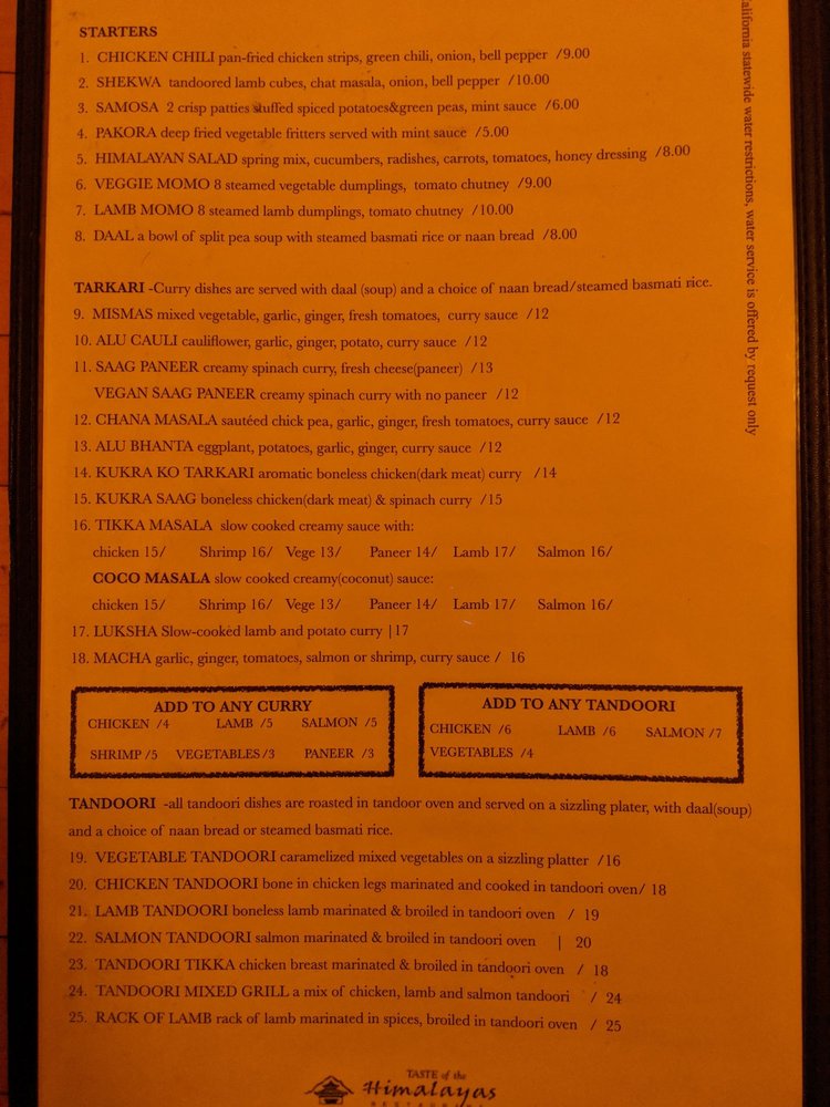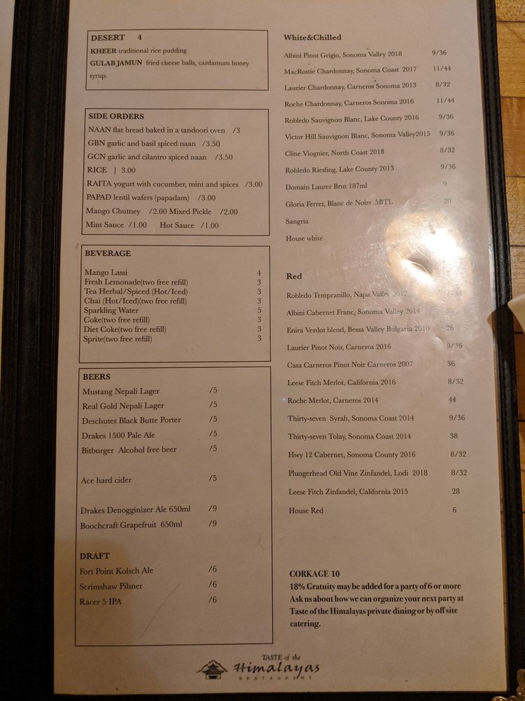 Taste of the Himalayas, located in Sonoma, CA, offers a delightful dining experience with a focus on Himalayan/Nepalese-Indian cuisine. The menu boasts a variety of vegan and vegetarian options, perfect for those with dietary restrictions. Customers rave about the flavorful dishes, such as the paneer tikka masala and lamb curry, as well as the cozy atmosphere and attentive service. The restaurant also provides a range of amenities including outdoor seating, free Wi-Fi, and gender-neutral restrooms. Don't miss the opportunity to try the veggie momo and alu bhanta, recommended for their delicious flavors. While some find the pricing on the steeper side, the overall experience at Taste of the Himalayas is worth it for a taste of authentic Himalayan cuisine.